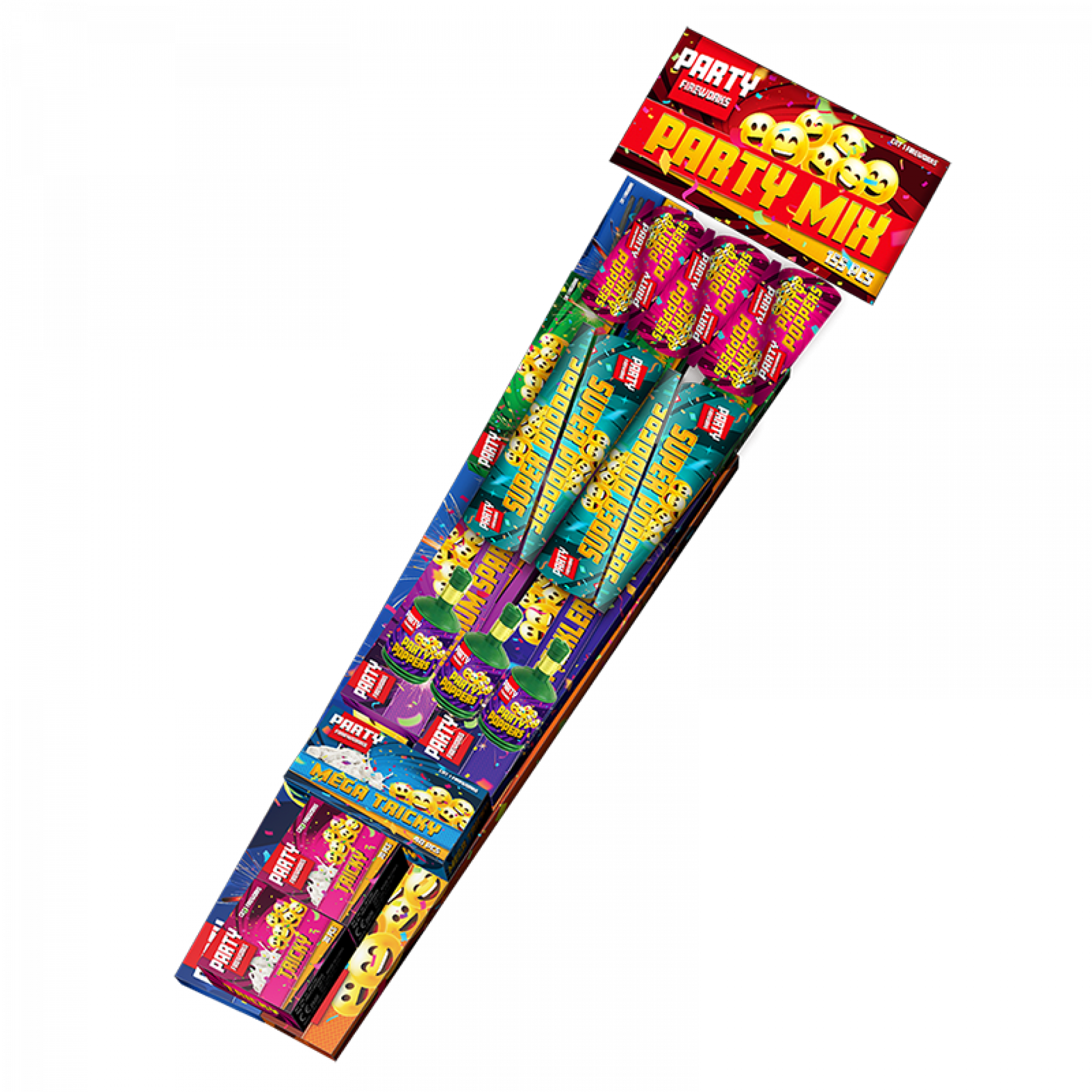 155 delig partypakket, sterretjes in alle maten voor de hele buurt, tricky's, mega tricky's, morning glory's en diverse party poppers!