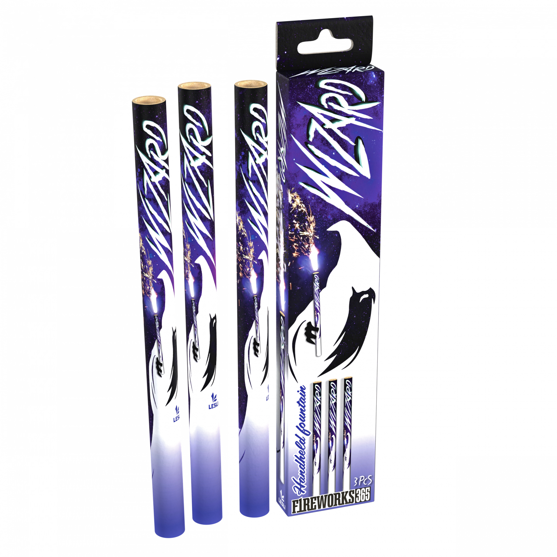 Fakkel met blauwe vlam en gouden glitters die overgaan in fel zilveren knettersterren. 40 seconden duratie!